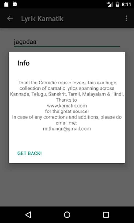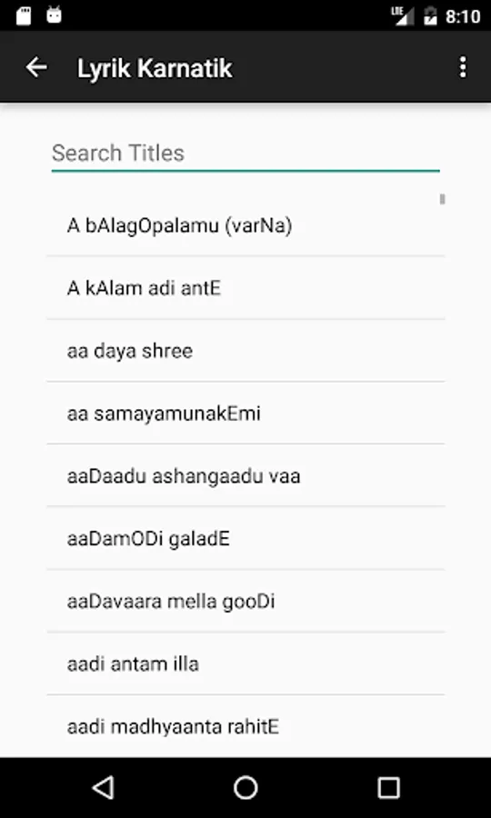 * A simple searchable & offline usable app consisting of over 8000 Carnatic Krithis & Bhajans