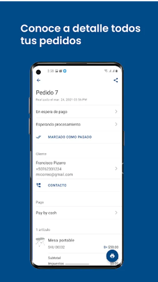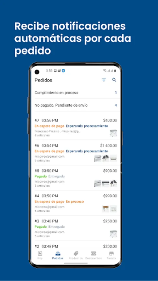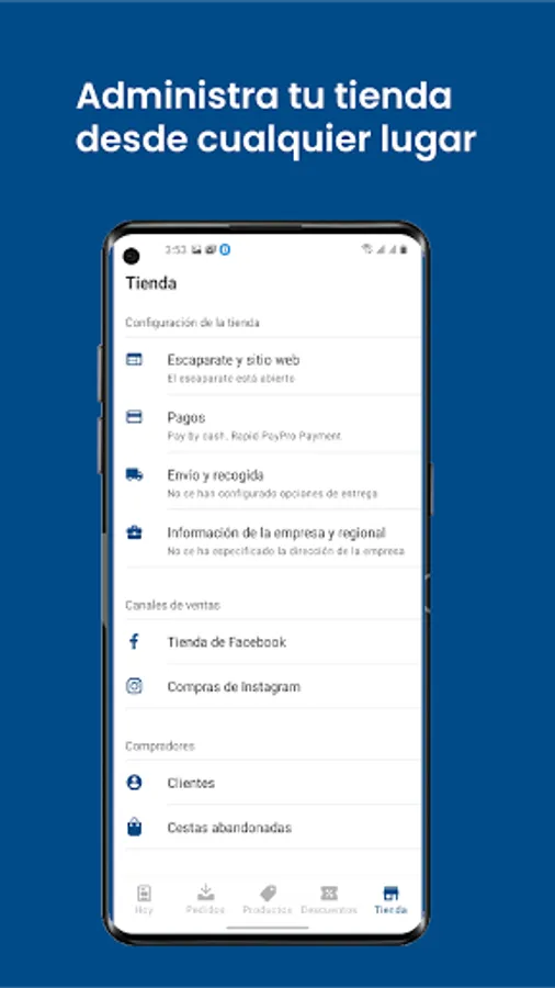 Upload products, check your inventory, sell from your social networks, receive automatic notifications when making a sale and much more.