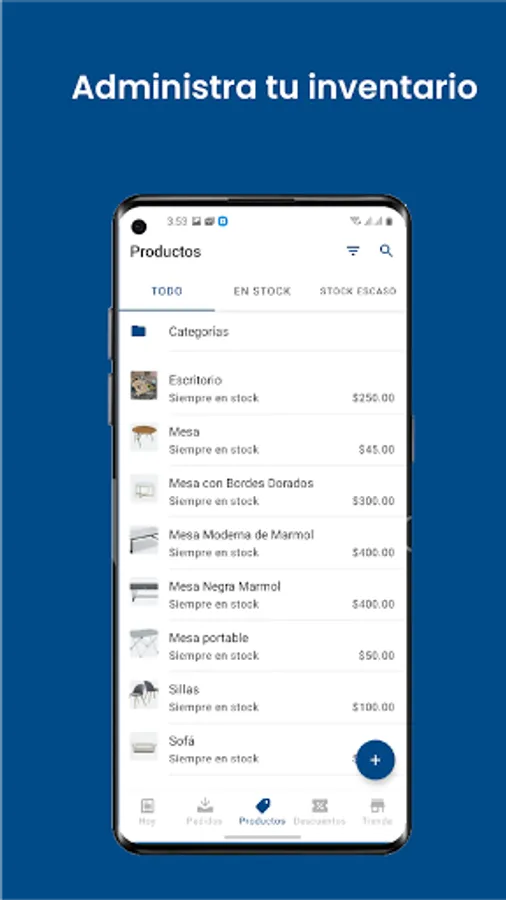 Manage your store from your mobile device, you can upload your products by taking the photo instantly or selecting a photo you already have, monitor and manage the stock level of your products.