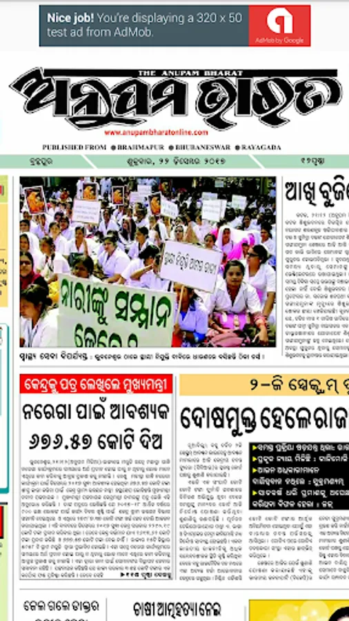 Anupam Bharat newspaper published from Brahmapur, Bhubaneshwar and Rayagada