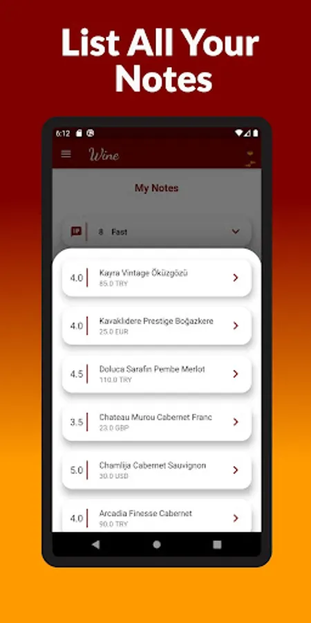 - Brand Name, Country, Vintage, Abv, Region, Grape, Price with Currency, Smell, Taste, Finish and Review
