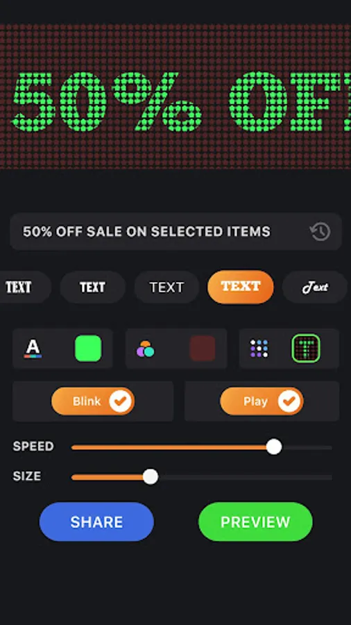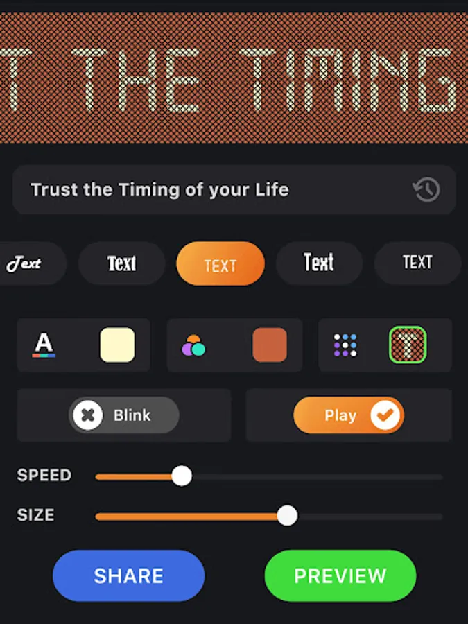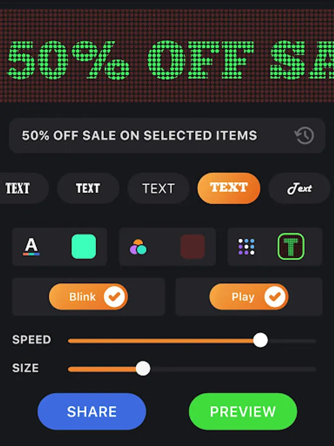 Enter your message and it will appear scrolling on the screen! LED sign board is most complete and customizable app.