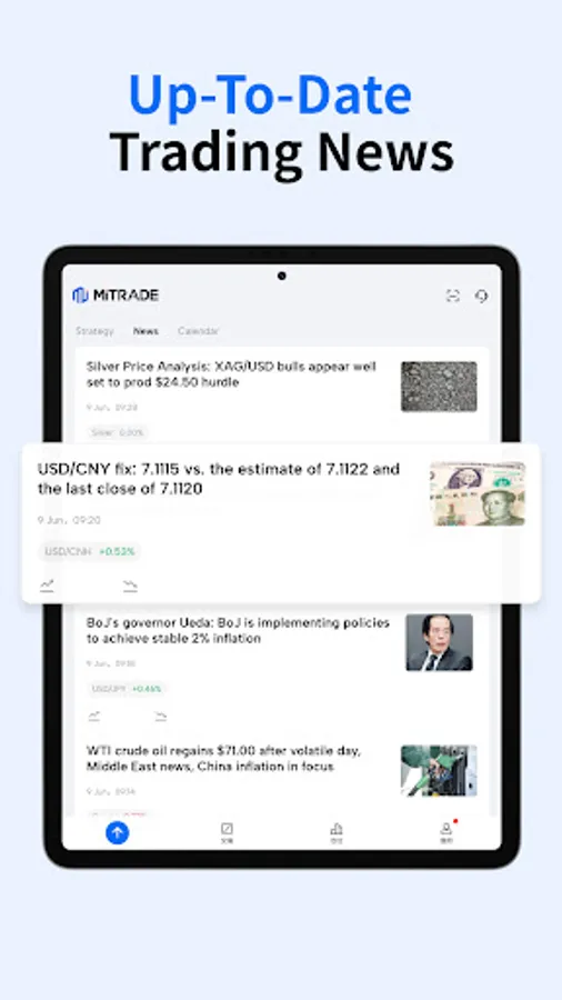 We believe speedy access to timely news and a fast platform interface are key to bringing quality investment opportunities to our savvy investors. No matter when and where you are, whether you are on your phone or using a desktop, you can access the international financial market on Mitrade to get real-time price updates, the latest news and economic data, weekly outlook, and exclusive market insights for chart analysis and investment decisions. Most of the tools available are free-of-charge and no registration is needed.