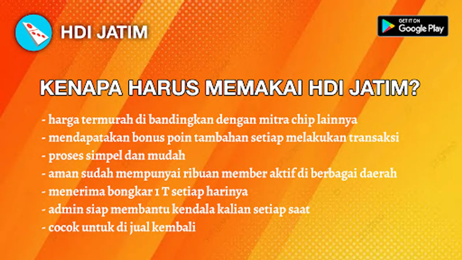 What are you waiting for? Come on, download the MITRA HDI JATIM application now to make it easier to buy higss domino island CHIP or BONGKAR that you want at the best price.