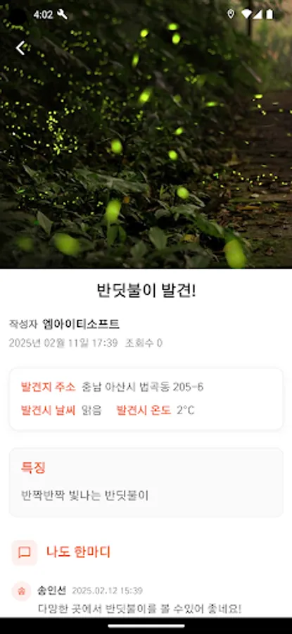 Sustainable development (SD) means “development that meets the needs of the present generation without compromising the potential to meet the needs of future generations.” A mobile service that allows you to easily participate in environmental protection activities by sharing activities to observe fireflies, a representative environmental indicator species, through a mobile app as an activity for 'Goals 15: LIFE ON LAND (protection of terrestrial ecosystem)' among the indicators for sustainable development. no see. We also hope that observing fireflies with children will provide valuable experiences to the next generation.