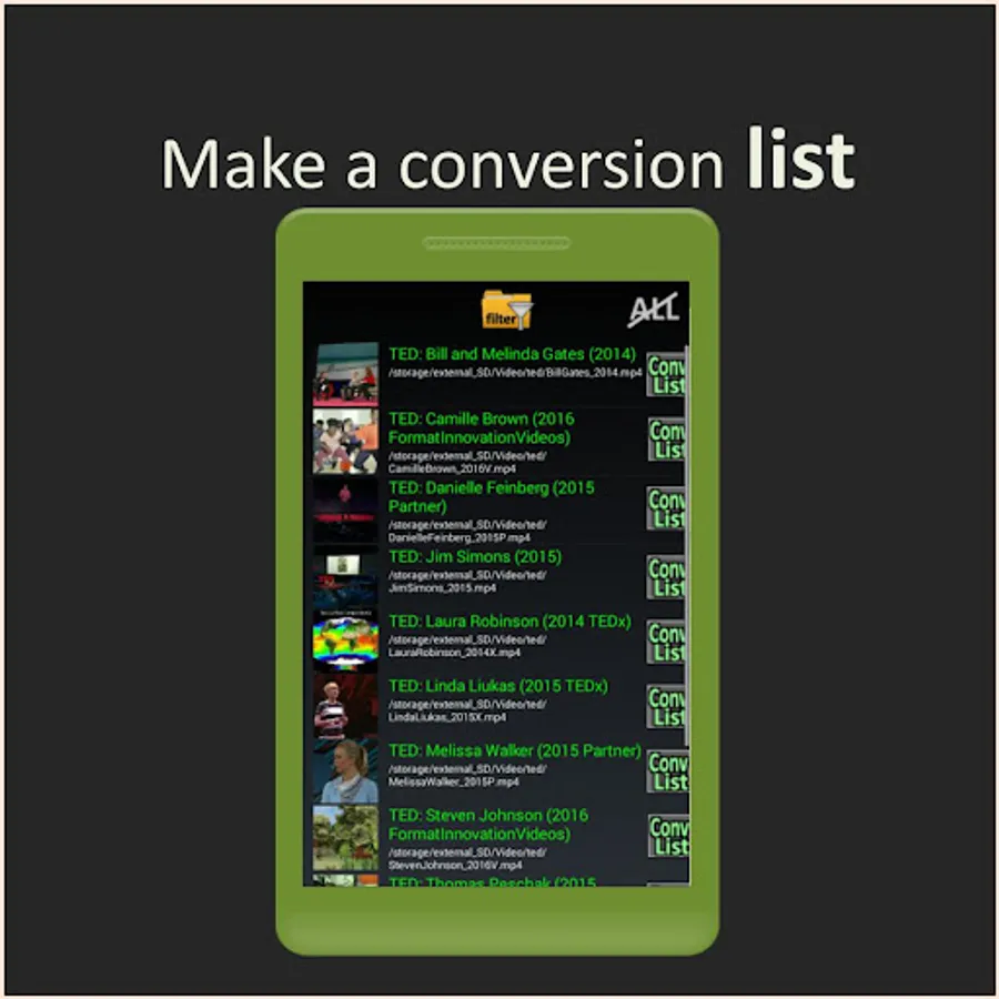 ・change video/audio types automatically and sequentially because of having a bunch of files. (codec conversion, format conversion)