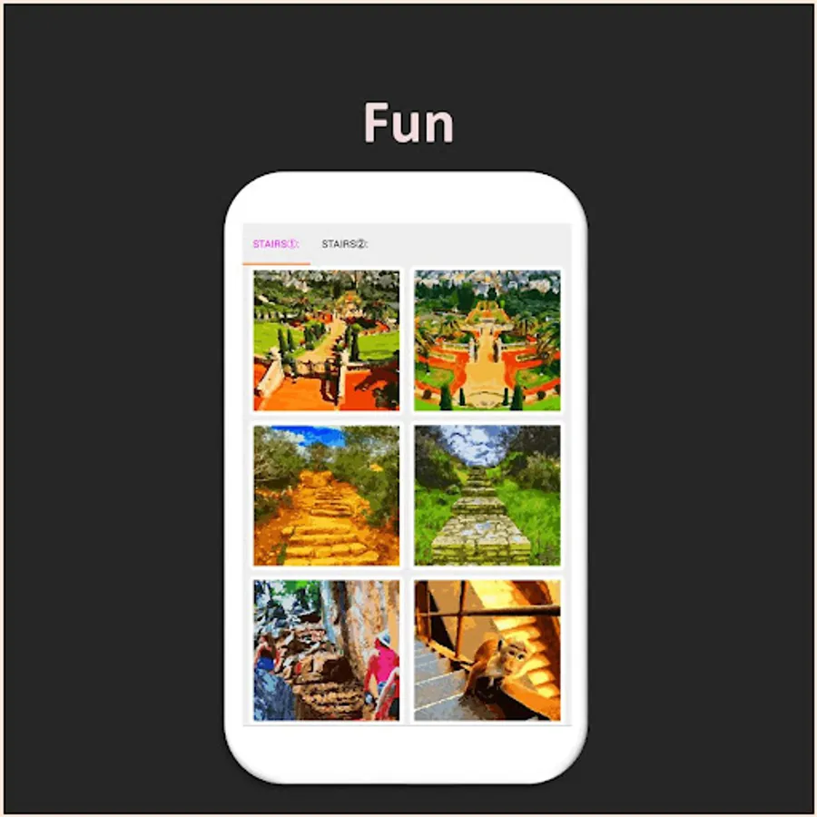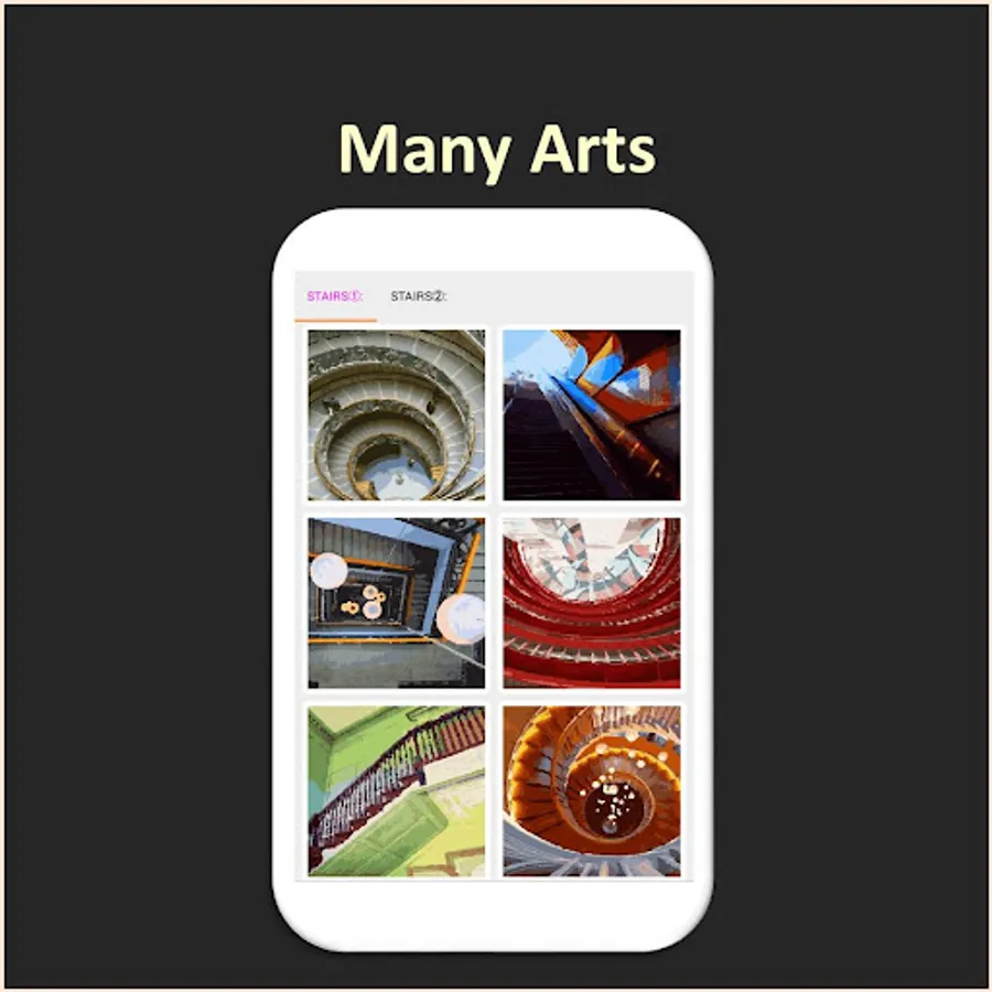 Anyone from adults to children can enjoy stairs arts. You can made original arts with camera. Let's make and share your arts with your family or friends.