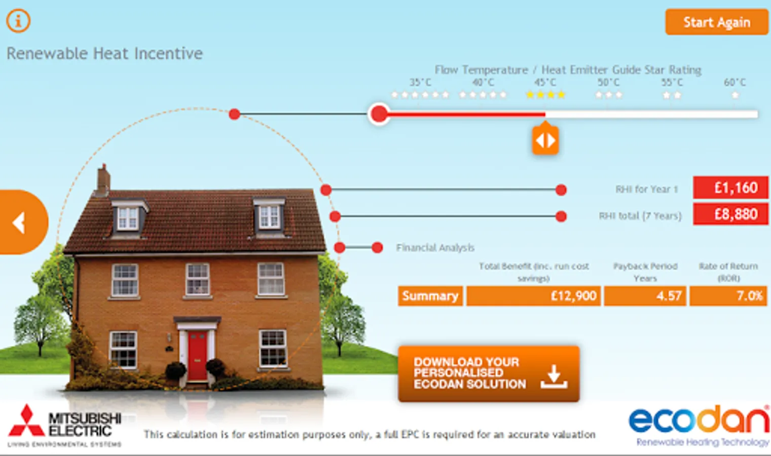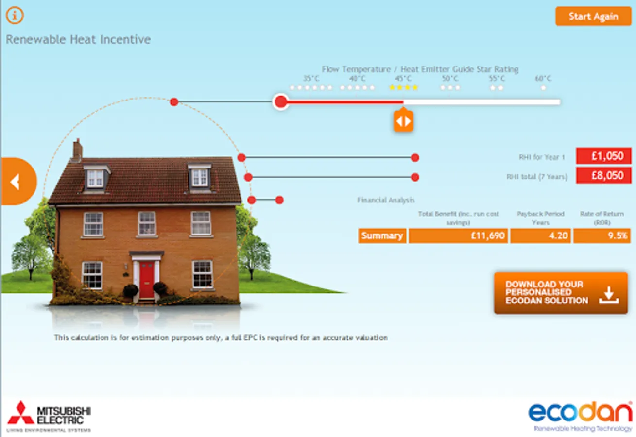 The Ecodan Selection Tool allows end users, consultants and contractors with an interest in heat pumps to get an insight into what this technology could deliver to their building. The app also gives an estimate of the RHI payable on all projects from single domestic dwellings to large commercial projects. The application is designed to help select the right product solution and generates a report personalised to the application and user.