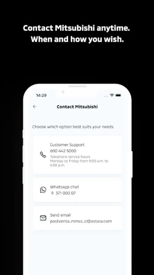 Find an authorized Mitsubishi Workshop or Dealership using the app’s map or powerful search engine.