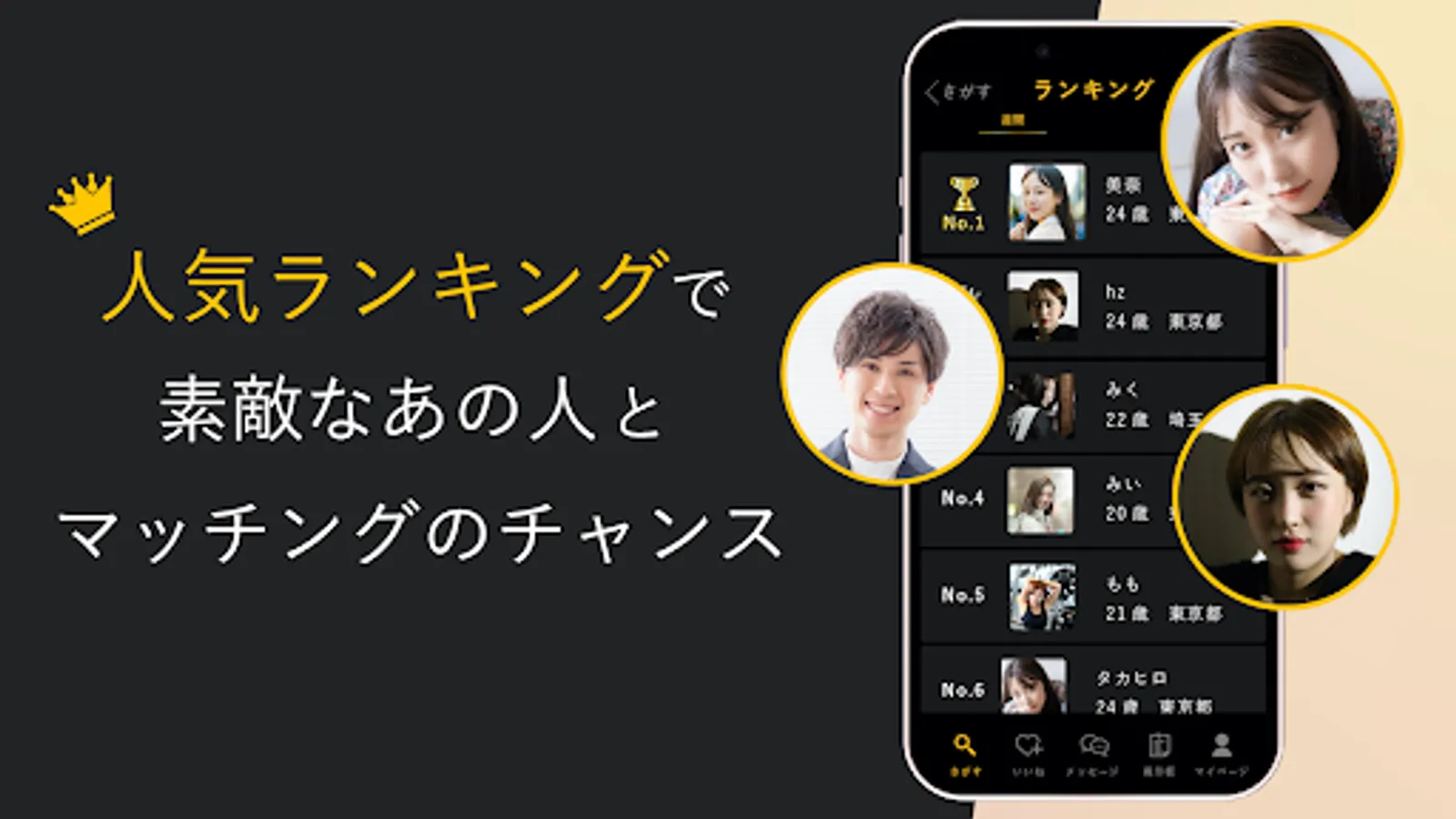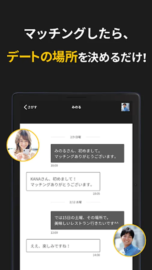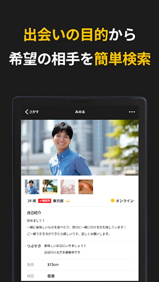 A matching app where you can find a date partner! It is a dating app that can be used as a dating app to find drinking friends, a date suddenly, and a matchmaking app.