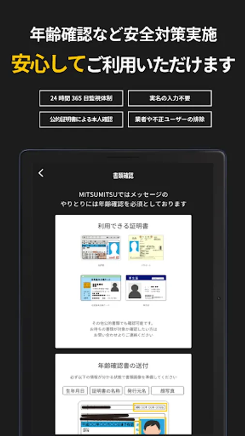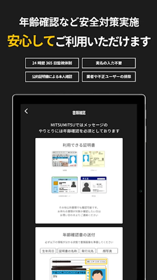 ・Before using the message function, it is mandatory to submit an age verification document with a face photo.