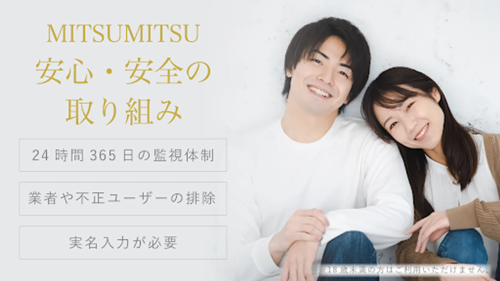 ・Persons under the age of 18 are not permitted. In addition, it is strictly prohibited to post information on your profile that suggests meeting through money exchange.