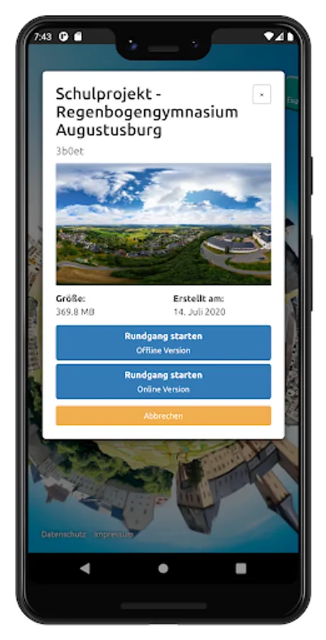 With the app. is a digital school project for the better marketing of castles in Central Saxony. Pupils from high schools and high schools have worked through and illuminated the history and events in the old walls in virtual 3D tours. This information was integrated via a tour kit (content management system) of the virtual 3D tour. Valuable content was integrated into the panoramas, partly through research but also in a playful way with the recording of video clips and plays. The pupils created, filmed and recorded the content themselves on numerous project days and inserted it into the virtual tour in. A knowledge quiz was also included in each of the virtual tours. At the end of the virtual journey, this quiz can test users' knowledge. The project was developed in close cooperation with the funding agency Regio Döbeln e.V. The app. is a model project and can be applied to any other school. It is the digital answer to a PowerPoint presentation. The app. is a digital student project from 4 schools in the district of Mittelachsen.
