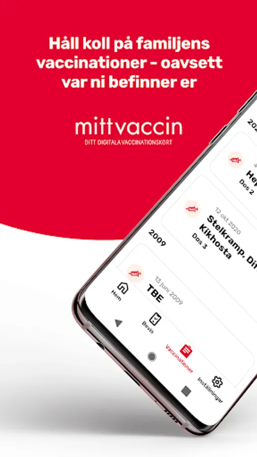 With MittVaccin, you get access to your vaccinations digitally so they are always at hand when you need it. We show information from hundreds of connected receptions throughout the country. You also get access to the history of your minor children. If you are missing vaccinations, they can easily be added manually.