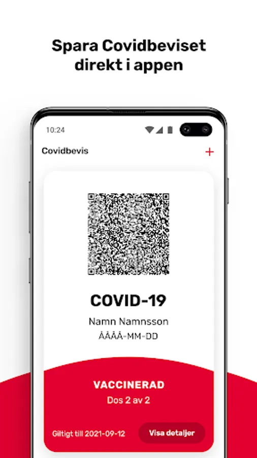 Within seven days after you have been vaccinated against covid-19, you who have Swedish e-identification can collect your proof at www.covidbevis.se. The proof can then be easily saved in MittVaccin in several different ways: