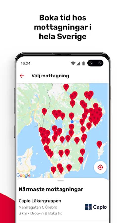 With MittVaccin, you can find the nearest vaccinator and book an appointment at one of our many affiliated clinics. In the app, you can also register your arrival and change or cancel your appointment. You will automatically receive a reminder when your booked time is approaching.
