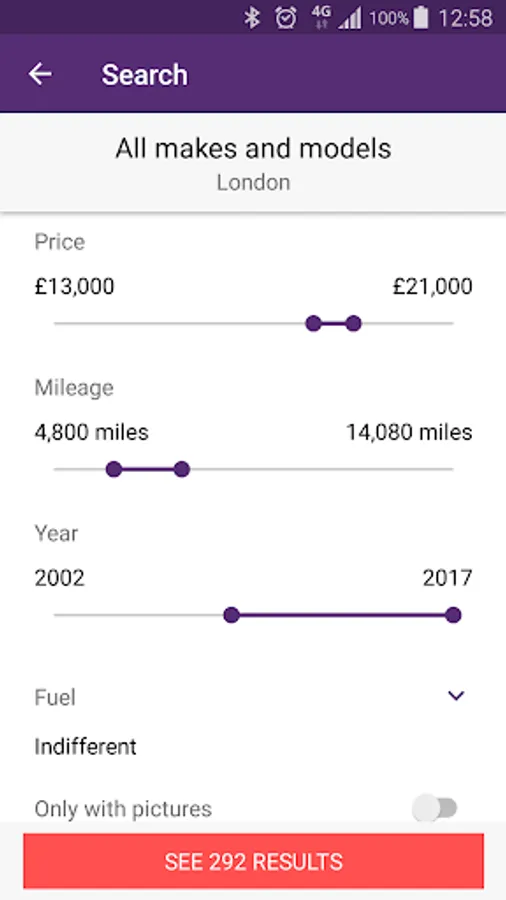 An app designed to give you the most personalized results possible and make your car search simple, comfortable and intuitive. Available in more than 40 countries and 15 languages. You can find cars in London, Birmingham, Manchester, Leeds, Bristol, Sheffield, Glasgow, Cardiff, Edinburgh, Newcastle, Reading, Norwich, Liverpool, Nottingham, Sunderland, Belfast and thousands of other locations.