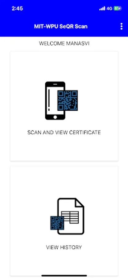 This application, after scan, provides the preview of the certificate and other document data that can be compared with the in-hand document. Thus verifying documents of MIT-WPU University is quick, free and easy via this application