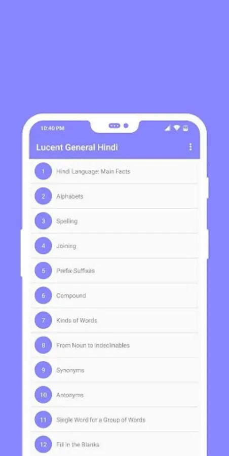 This book is a masterpiece for those who want to learn hindi. It is Lucent General Hindi book. All students must read Lucent General (Samanya) Hindi to score good marks. You must download Lucent Samanya Hindi if you are a hindi lover. Lucent General Hindi questions are very straight forward which may be asked in your exam. It has each and every lesson of Lucent General (Samanya) Hindi complete book. No Need to buy textbook now you can refer it from this app.