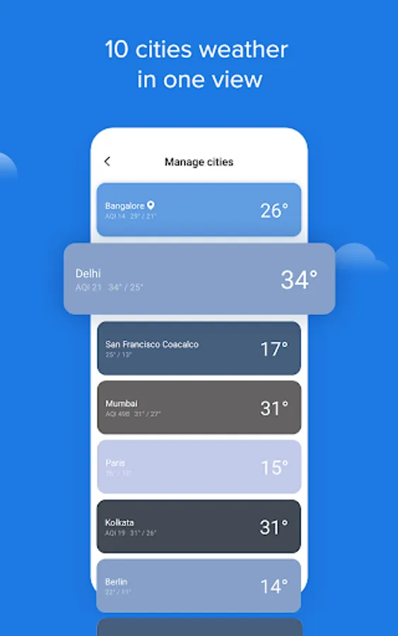 - View all cities in a single screen to compare weather in multiple cities