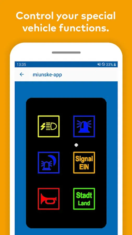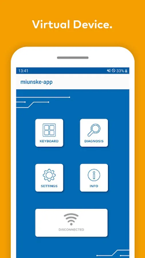 The Virtual Device is based on the interaction of the miunske app with a CAN-WLAN module which must be purchased separately from miunske. The app can control functions connected to the CANbus and display desired data by the exclusively provided WLAN – network. The Virtual Device user interface is customisable by anybody according to the application. The keymaps are simply exchangeable and for different applications loadable into the app.