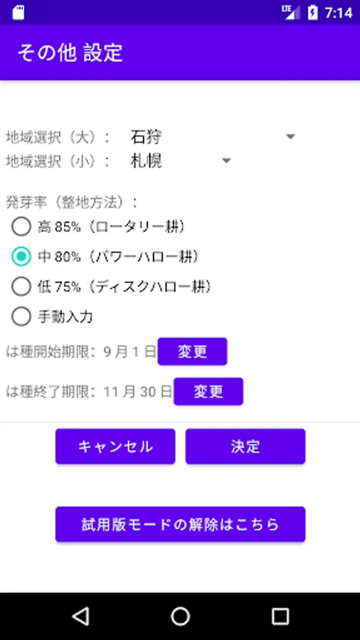 When you enter the following information, a screen that automatically calculates when and how many seeds should be planted will be displayed.