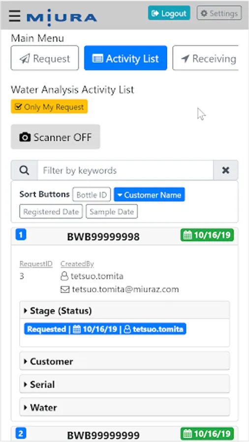 Tracking water sample bottle with QR Code