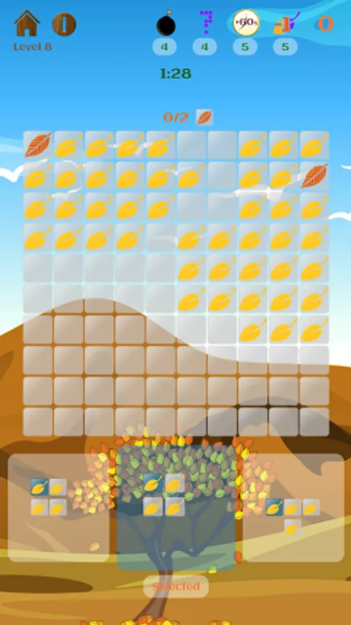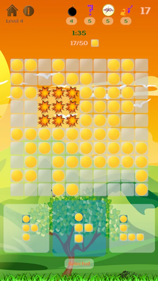 Through 4 seasons you will test you mind abilities while trying to position tetris like shapes in the right places to smash blocks and avoid losing the level because of running out of space on board, or running out of time.