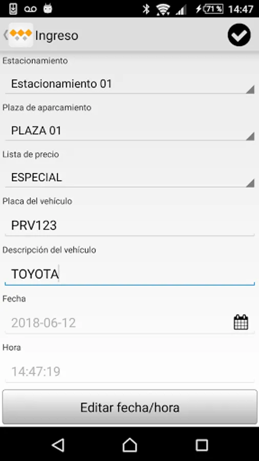Parking VM application interacts with a Web platform that allows full management of the parking lot. The solution allows setting the number of places you can have a parking lot, the application allows printing of parking ticket with barcode, controls the time of the vehicle and automatically applies the charging rate according to the set schedule by the user.