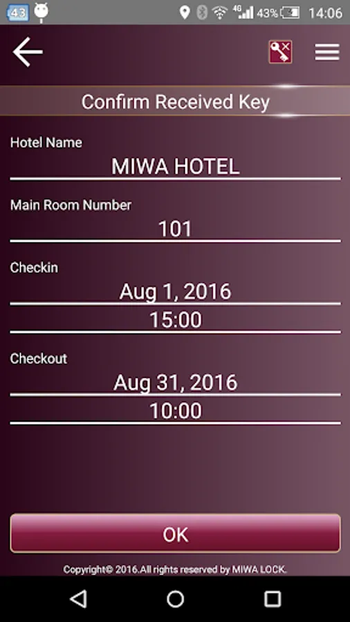 This app uses Bluetooth for sending KEY information to hotels door lock.
