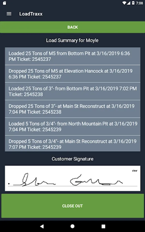 Using the app, drivers can quickly and easily set the customer, location, and material details of their haul and get on the road faster. At the end of each day, drivers simply submit their daily log via the app which is then synced with the online dashboard. This new way to manage load data means instant invoices in the office.