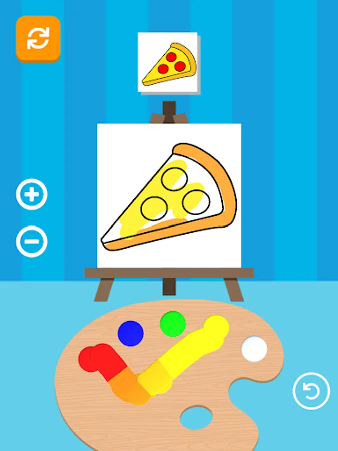 Use your fingers and the palette to mix the colors, then paint a picture based on the sample.