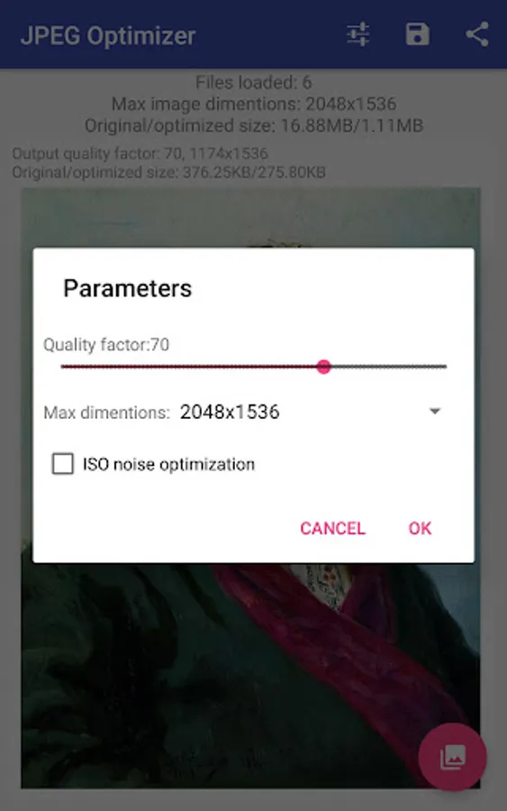 More, unique ISO Noise Optimization algorithm allows you to reduce image file size with quality enhancement.