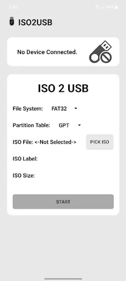 ISO 2 USB is the 1st app to burn ISO Files To USB Stick (Pin Drive) without root quite easy with amazingly simple UI, you can easily create bootable USB flash drive from your phone.