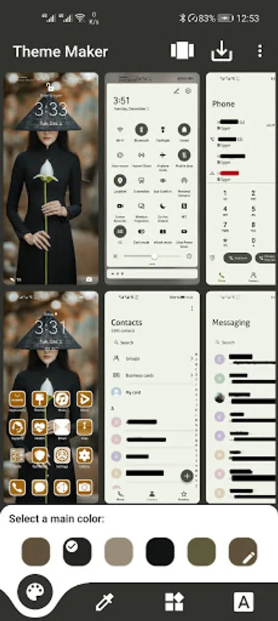Theme Maker For EMUI is the most powerful Huawei (EmotionUI) theme editor with its simple and awesome UI and its wide set of options to help you customizing your phone easily. It's fully free and available to everyone. You can pick, edit and save your theme quite fast. Never hesitate to download it.