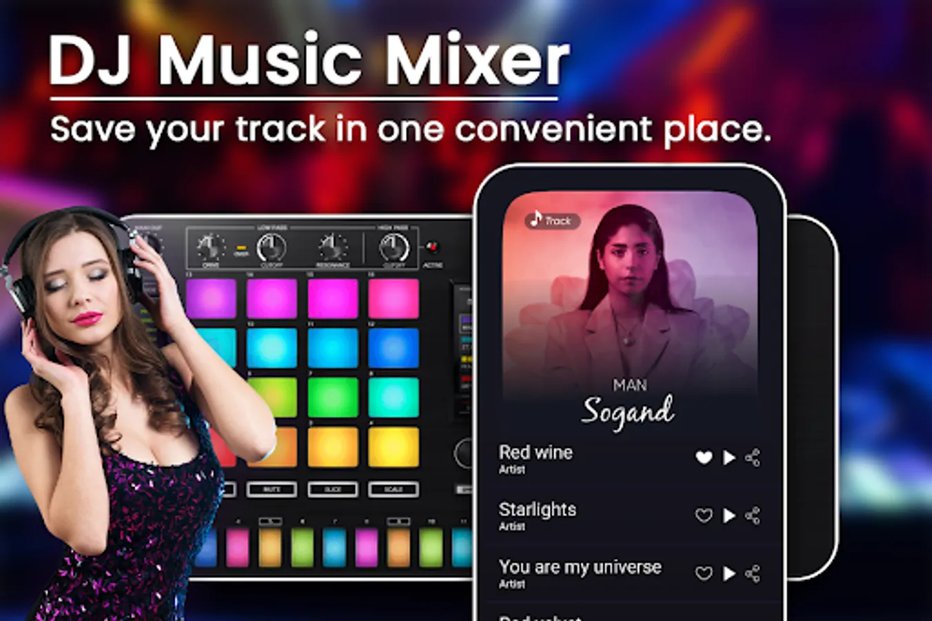 music DJ Mixer : Virtual DJ Songs Studio Mixes is an application for mixing mp3 music it's a virtual dj mixer, Dubstep Drum Pads. music DJ Mixer : Virtual DJ Songs Studio Mixes is an application with features remixes of the song, the beginning, the loop to create, save and playlists. its easy for amateur dj lovers.