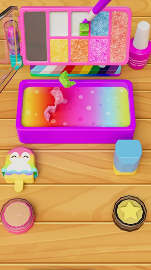 Immerse yourself in a stress-relieving realm where lipsticks pop like bubbles and fidget toys transform into sources of delight. Embark on a journey that combines the joy of makeup with the tactile satisfaction of pressing and stretching, resulting in a harmonious symphony of colors and textures. Engage in the therapeutic practice of mixing and molding, and revel in the relaxing escape offered by this extraordinary girls' slime game.