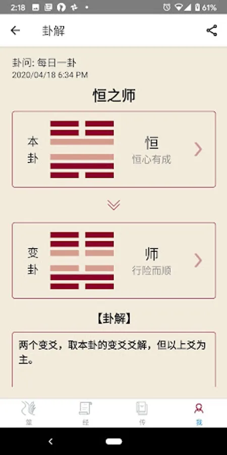 Cool looking Zhouyi is a traditional Zhouyi calculation and learning software. Use the traditional method of yarrow. That is, 50 yarrows are used to deduce each line, and a total of 18 calculations result in a hexagram image.