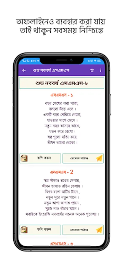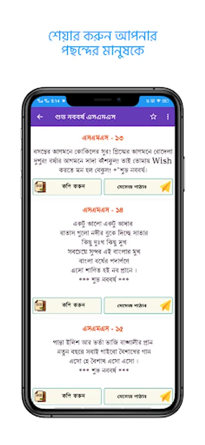 বাংলা বছরের ১ম দিনকে সামনে রেখে চমৎকার সব নতুন নতুন New year SMS দিয়ে সাজানো হয়েছে আমাদের এই অ্যাপটি।