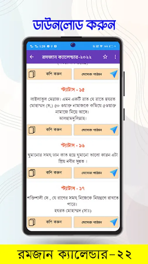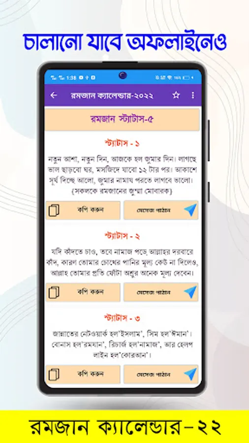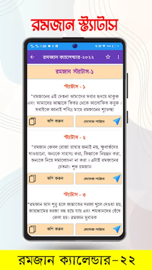 সঠিক সময় ও প্রিয়জনদের রমজান স্ট্যাটাস পাঠাতে চাইলে আমাদের এই অ্যাপ টি ডাউনলোড করুন।