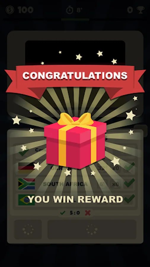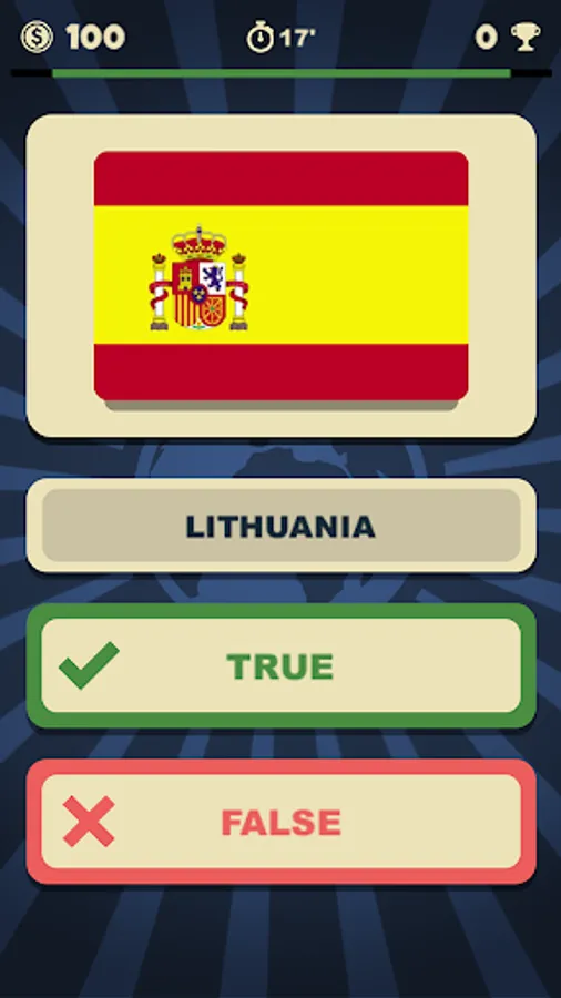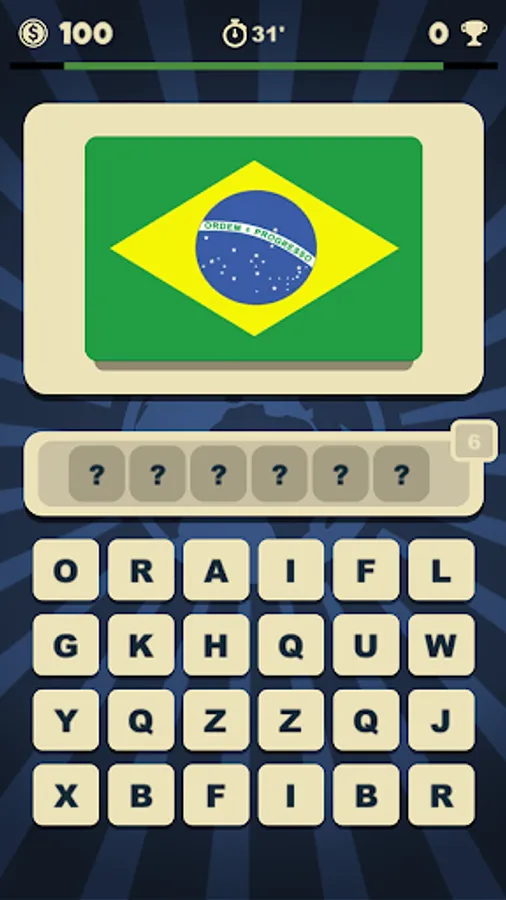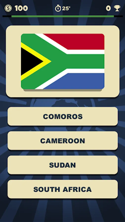 • Challenge - (This mode allows you to play against your friends or random opponents, you must use the collected flags to determine the questions your opponent will answer and vice versa, who has more correct answers wins a prize).