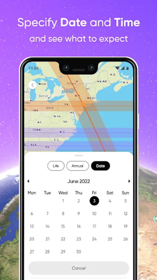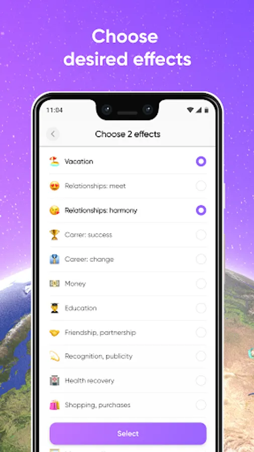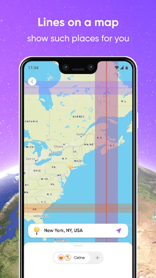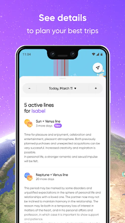 In the app you may choose desired effects and see on a map where these effects are present. Personally for you. Based on scientific astronomical calculations.