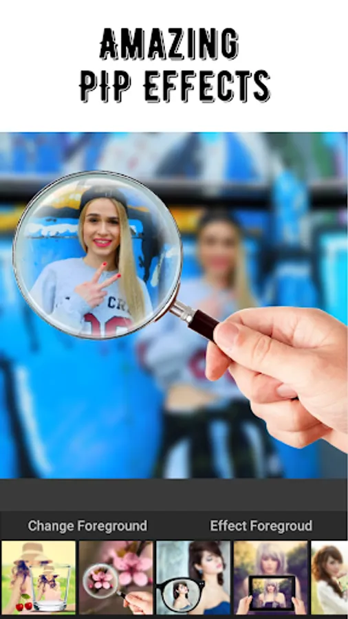 - Achieve picture in picture effect. Choose one of cool templates and apply it on your photo. For example, use frame or magnifying glass and part of your picture will be zoomed in it. You can create amazing posts by using picture in picture feature. PIP editor offers you awesome template options.→