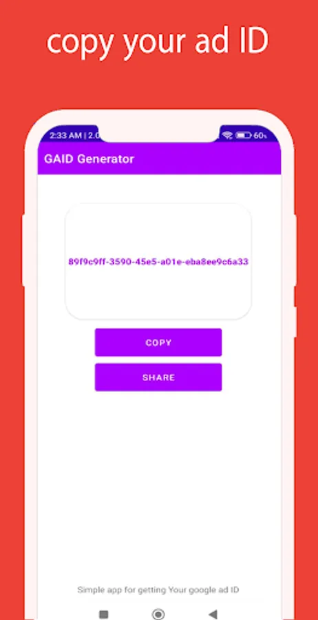 with this app you can get Google Advertising ID (AAID) for Android devices