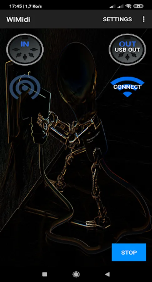 - Wifi network to another WiMidi instance or PC midi-fi server *