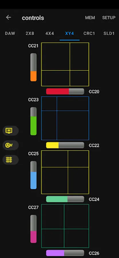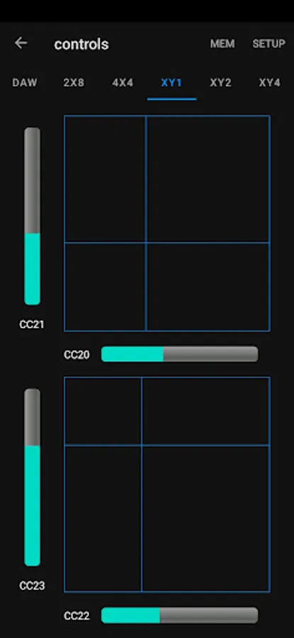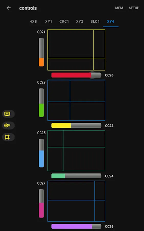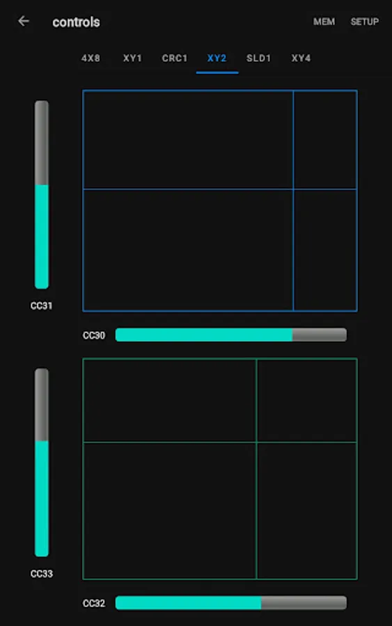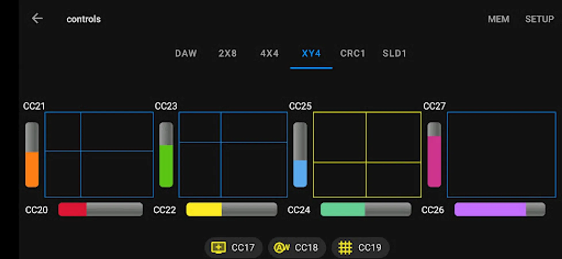 XY4 Tab: 8 learnable cc at same time controlled with 4 xy surfaces