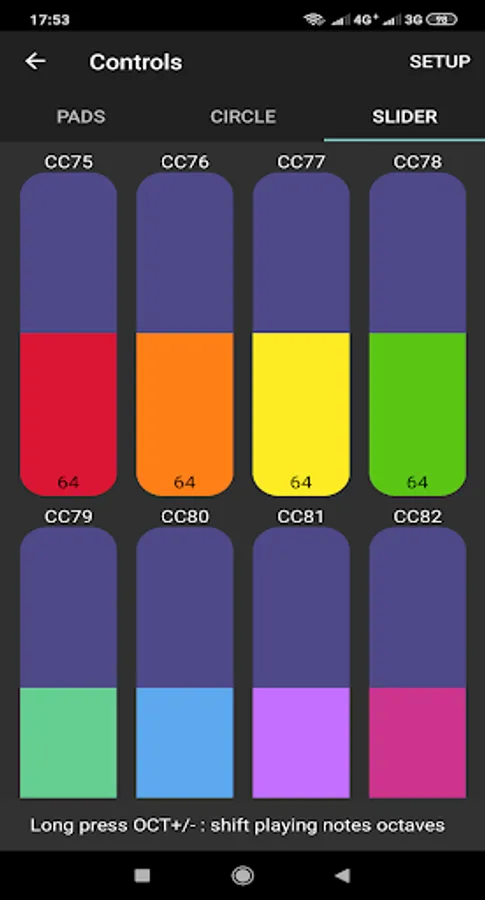 Easy midi CC Learn : Long press the CCxx text next to a knob, slider or XY control, the text turn to green. Now with input connected sending any CC value, will change the CC number of the on screen control, long press it again to store the new value : Now moving the control (knob, slider, xy) will send the new cc to the connected midi out.