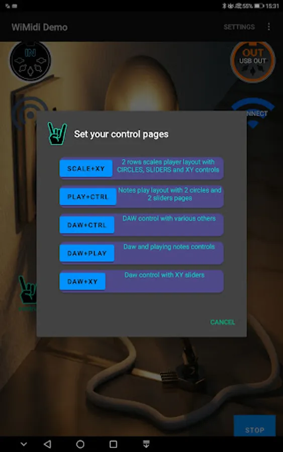 Choose your layout for on screen controls (long press controls buttons when output connected)