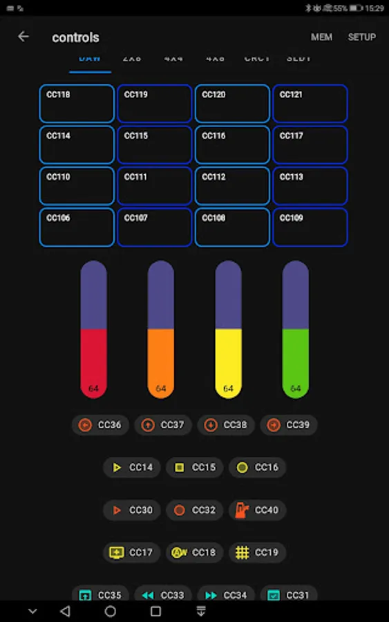 Daw Tab: Predefined CC buttons for transport,clip record and devices control.