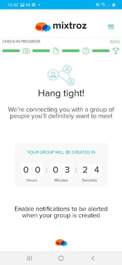 Mixtroz creates community and collects meaningful data wherever 50+ people are gathered live, virtual or hybrid. Attendees launch the app, create a virtual nametag, take a selfie, and answer a few questions, all in less than 2.5 minutes. When groups are created, attendees are prompted to join a group based on their answers. Grouped attendees gain easy access to icebreakers, group activities and group specific data points; sparking conversation and dynamic connections.